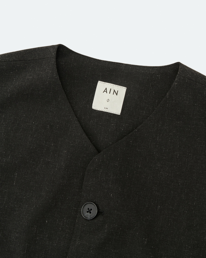Phom áo thoải máiTúi mổ phía trướcChất vải pha sợi ramie có họa tiết muối tiêuNút cài phía trước